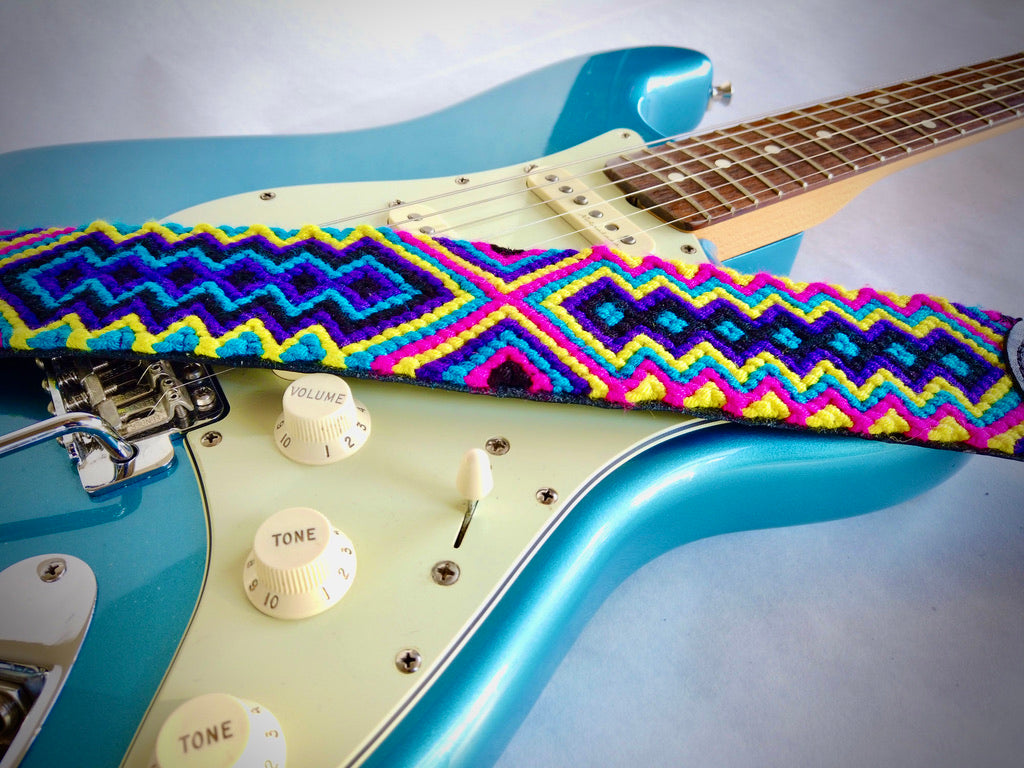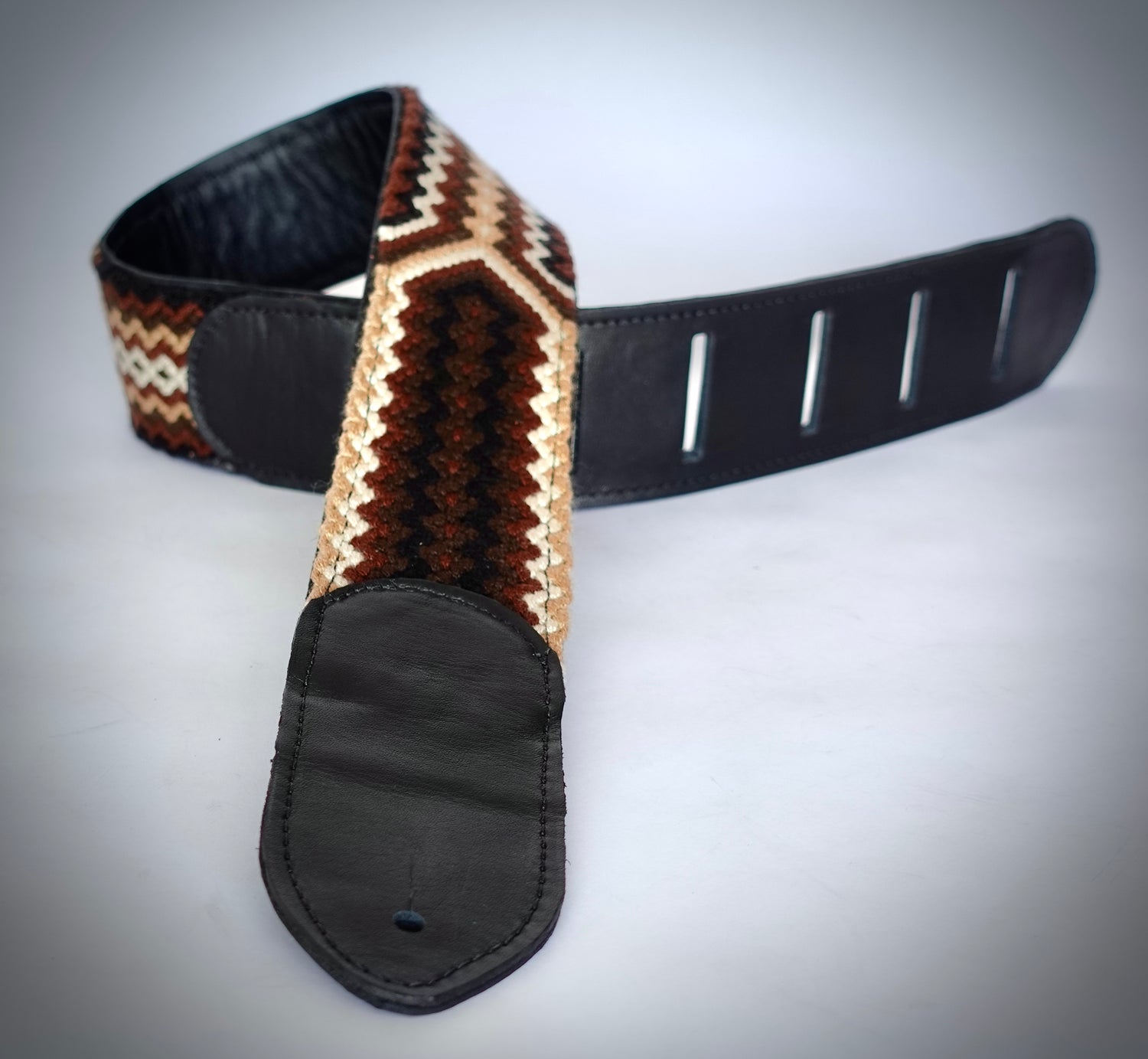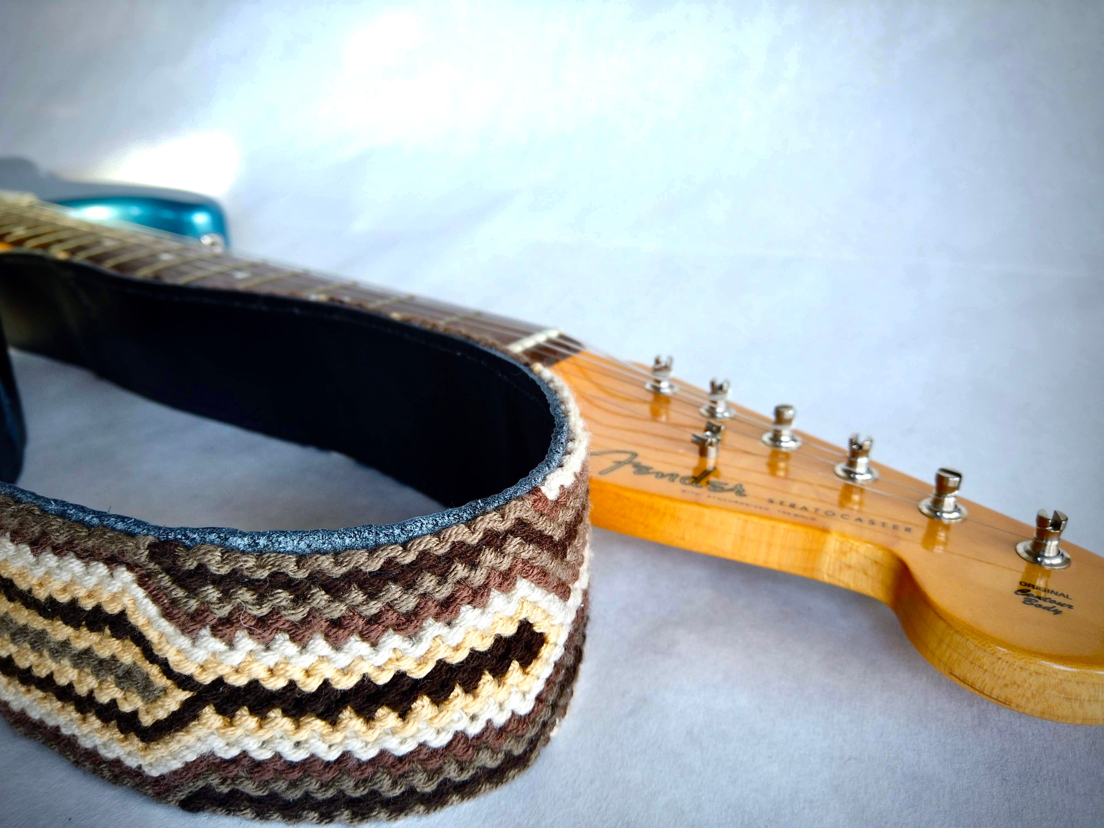 The story of our handmade leather guitar straps starts with the Wayuu Indigenous Group, a women-led indigenous group with reservations scattered across Colombia's remote Guajira region. Each woven pattern that our handmade guitar straps feature has been purchased directly from the artisan on a fair-trade basis.