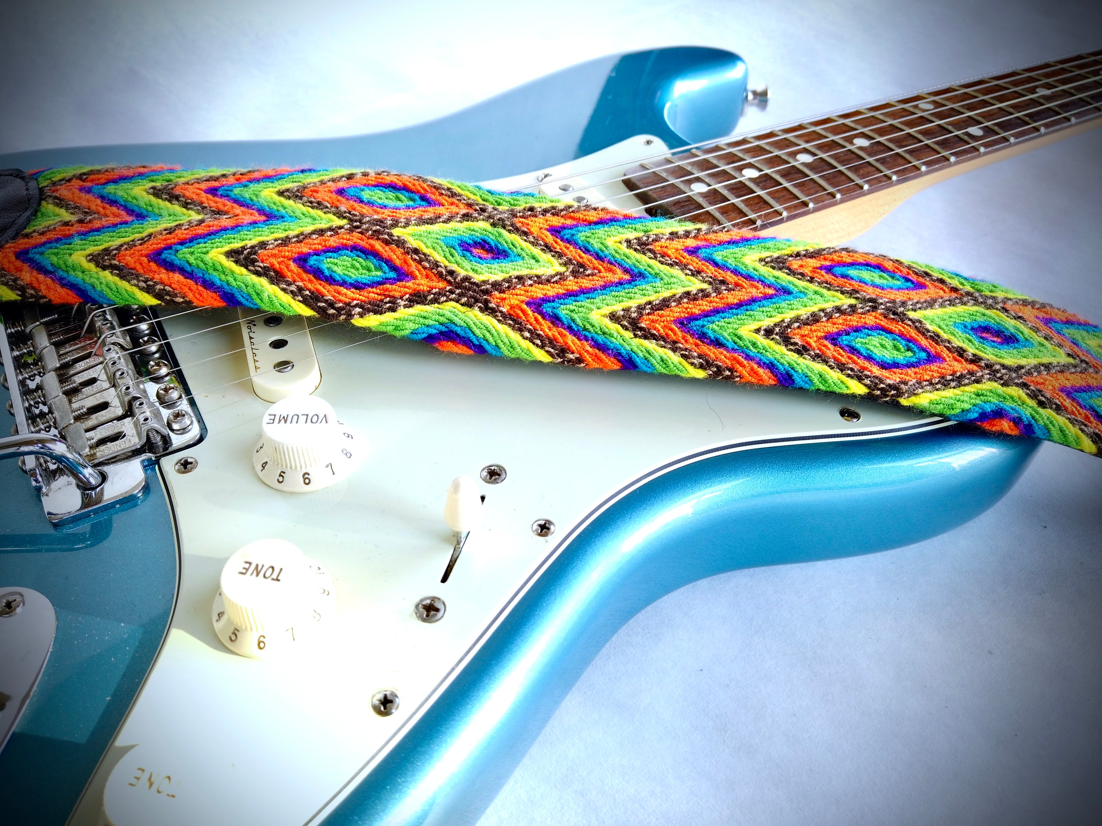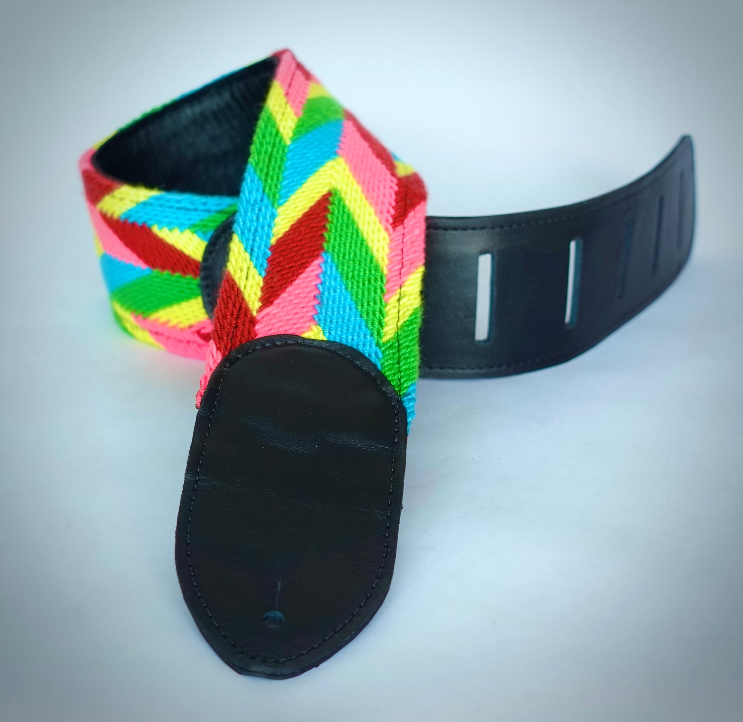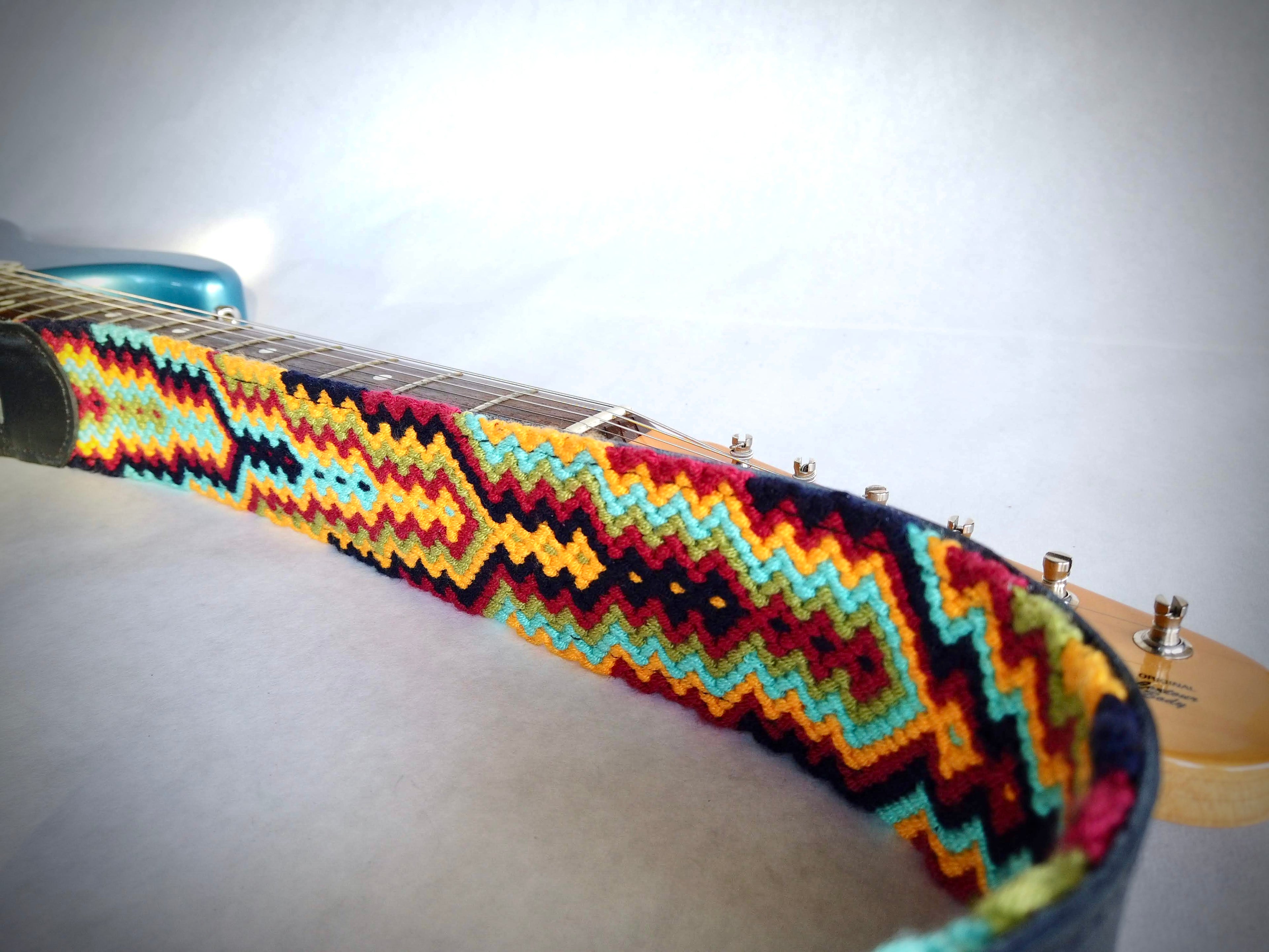 The story of our handmade leather guitar straps starts with the Wayuu Indigenous Group, a women-led indigenous group with reservations scattered across Colombia's remote Guajira region. Each woven pattern that our handmade guitar straps feature has been purchased directly from the artisan on a fair-trade basis.
