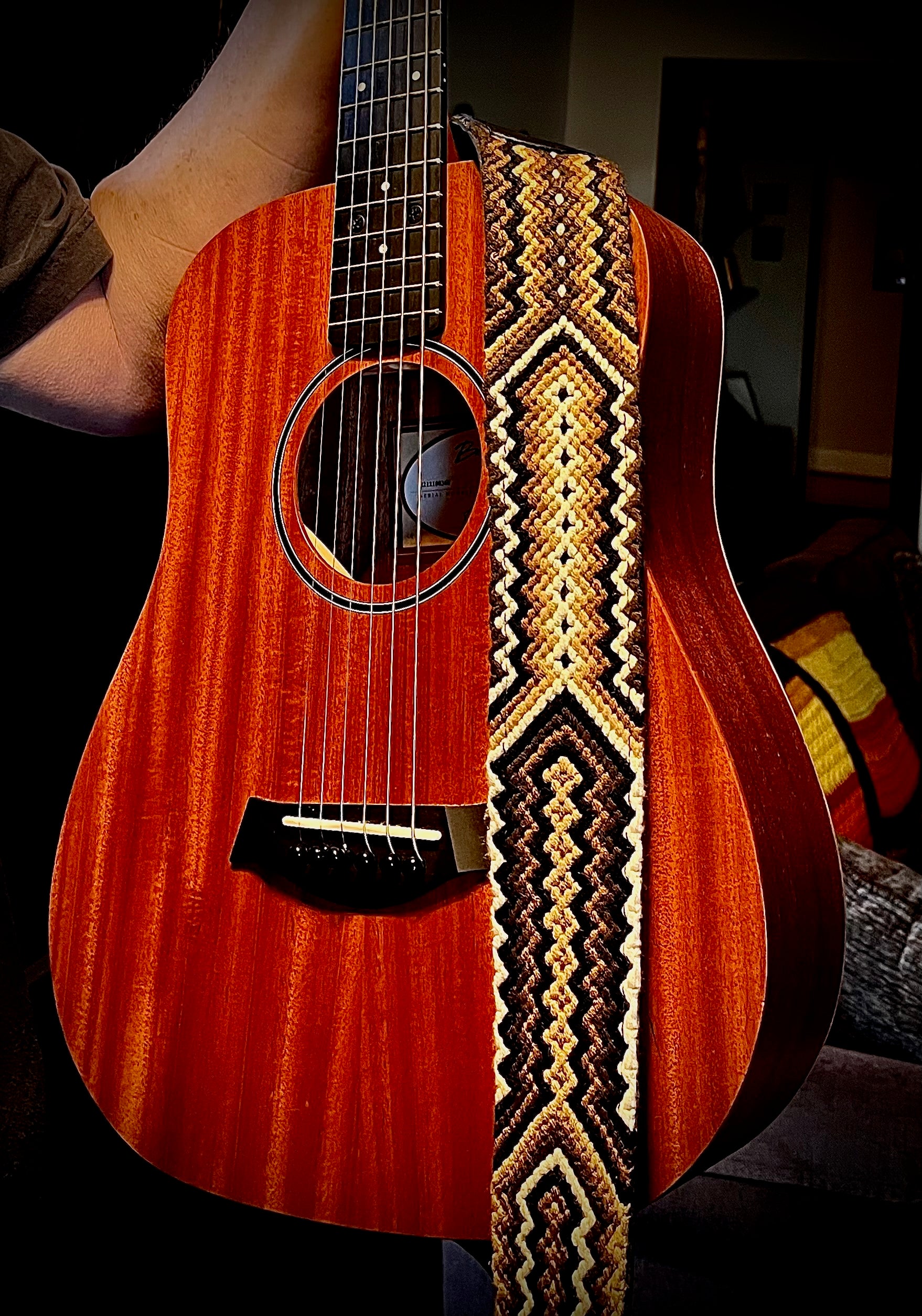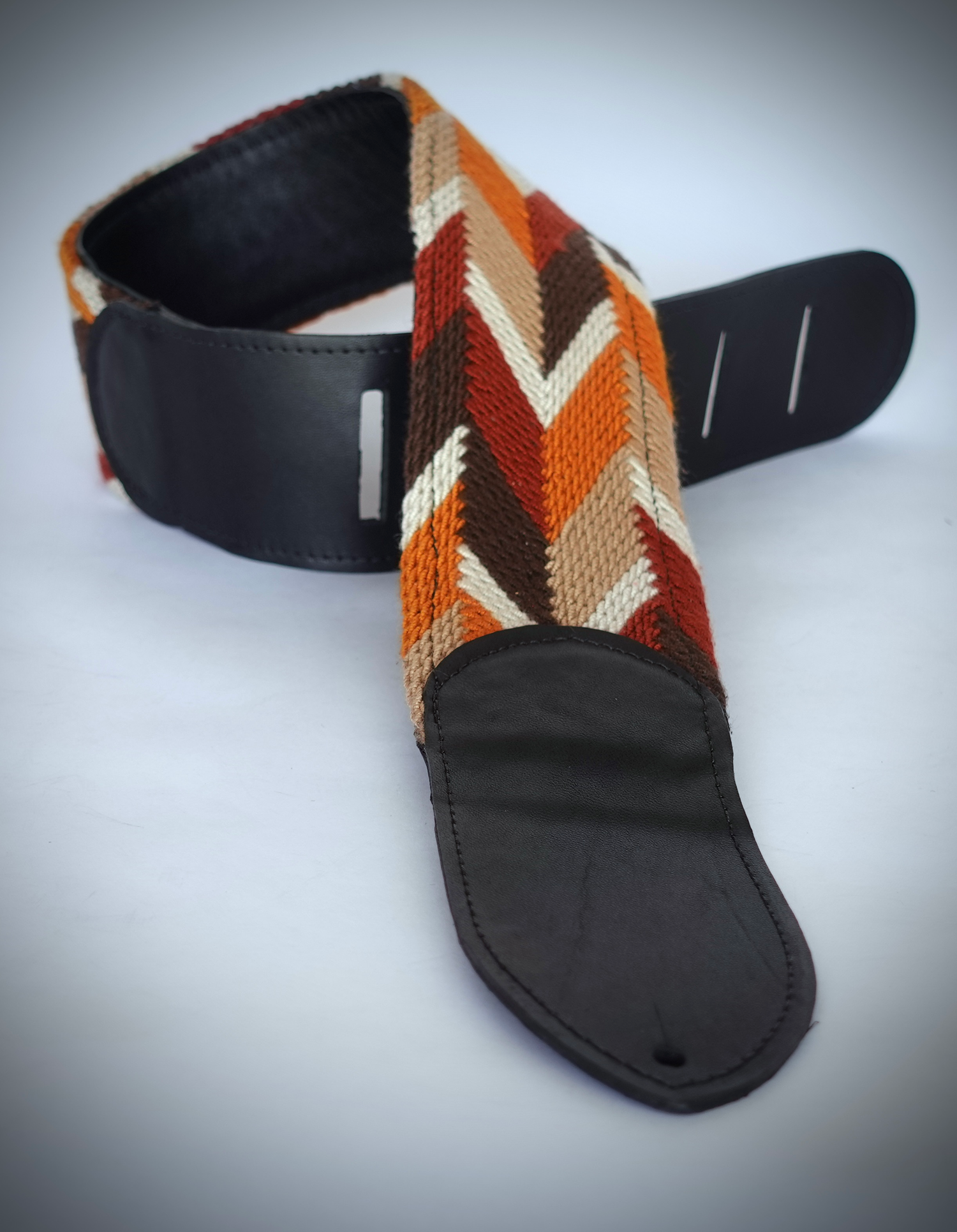 The Handmade Leather Guitar Straps in our Sunset Collection feature handwoven patterns...